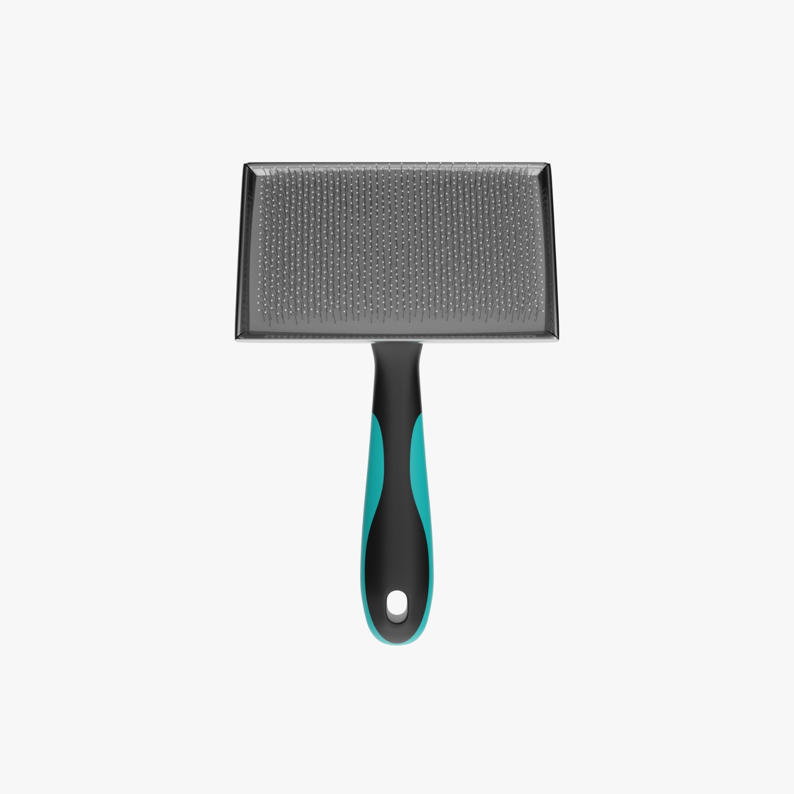A Rasqueadeira Pet Reta Grande Clássica Propetz possui pinos de aço cujas pontas terminam em ângulo de 45º, que tornam a escovação muito mais eficiente para desembaraçar nós e remover pelos mortos de animais com pelagem média ou longa. Além do mais, os pinos proporcionam excelentes resultados de higiene com menos esforço, sendo considerada a rasqueadeira mais usada em Banho e Tosa.