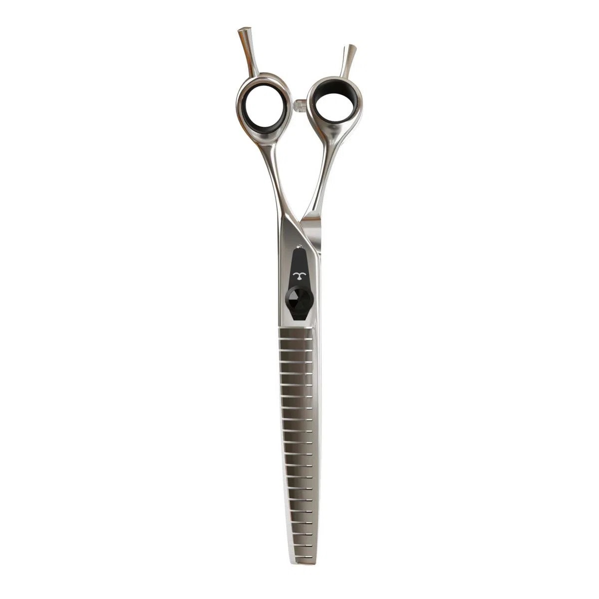 A Tesoura para Tosa Profissional Tubarão ULTRA7.5” Chrome 440C Premium atinge até 90% dos fios, tendo um alto poder de corte.